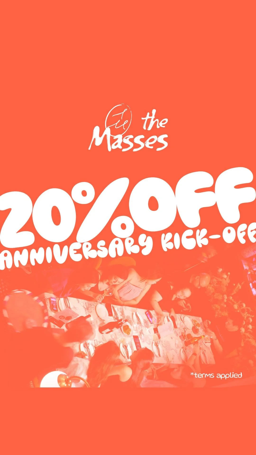 20% OFF all à la carte orders, wines, and other drinks*. From 10 April until 10 May only. Come celebrate our anniversary with us.